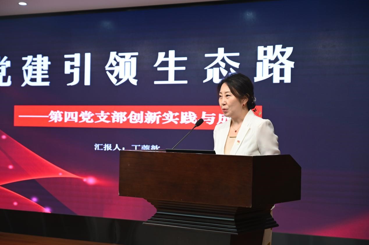 獲得2023年度中央和國家機關“四強”黨支部榮譽稱號的第四黨支部書記丁莞歆以《黨建引領生態路》為題,分享支部學習督導員制度、“三讀”分享會等特色品牌活動,通過構建常態化學習機制,有效提升黨員政治素養和業務能力,促進支部建設與業務發展同頻共振。