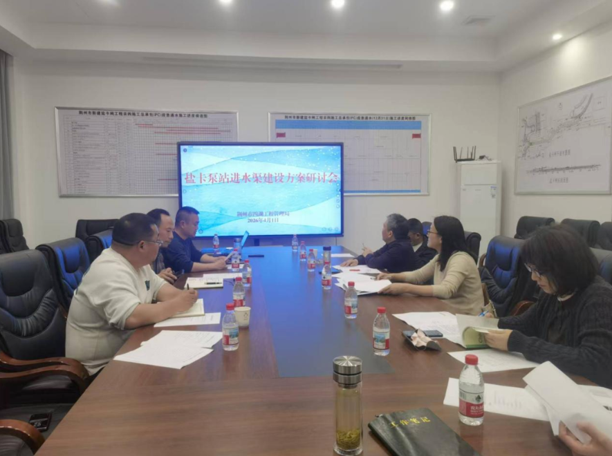 4月1日下午,荊州市四湖工程管理局在鹽卡水利工程管理所會議室組織召開鹽卡泵站進水渠建設方案研討會。